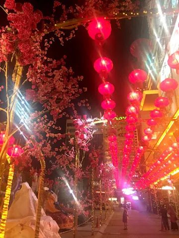 This is also taken at Times Square near Phase 1 called Birch the Plaza condominium. The red lanterns certainly light up the dark skies with pink cherry blossoms decorated on the sides. The flowers brighten up the place and make it more merry.